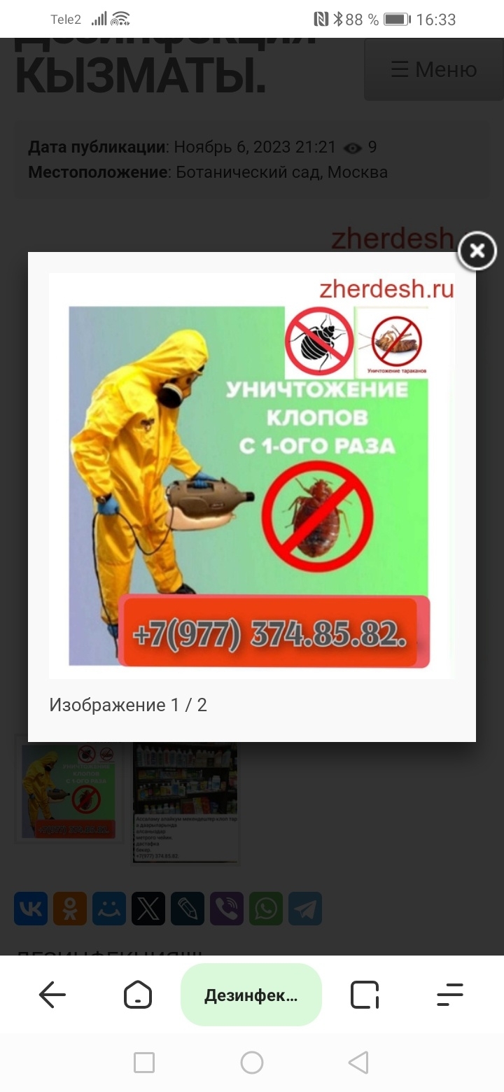 Ассаламу алейкум.москва шаарындагы мекендештер дезинфекция КЫЗМАТЫ клоп Таракан дарылайбыз Жана дары ОЗУ сатылат алсаныздар дастафка бар метрого чейин жеткиребиз. 8977 3748582